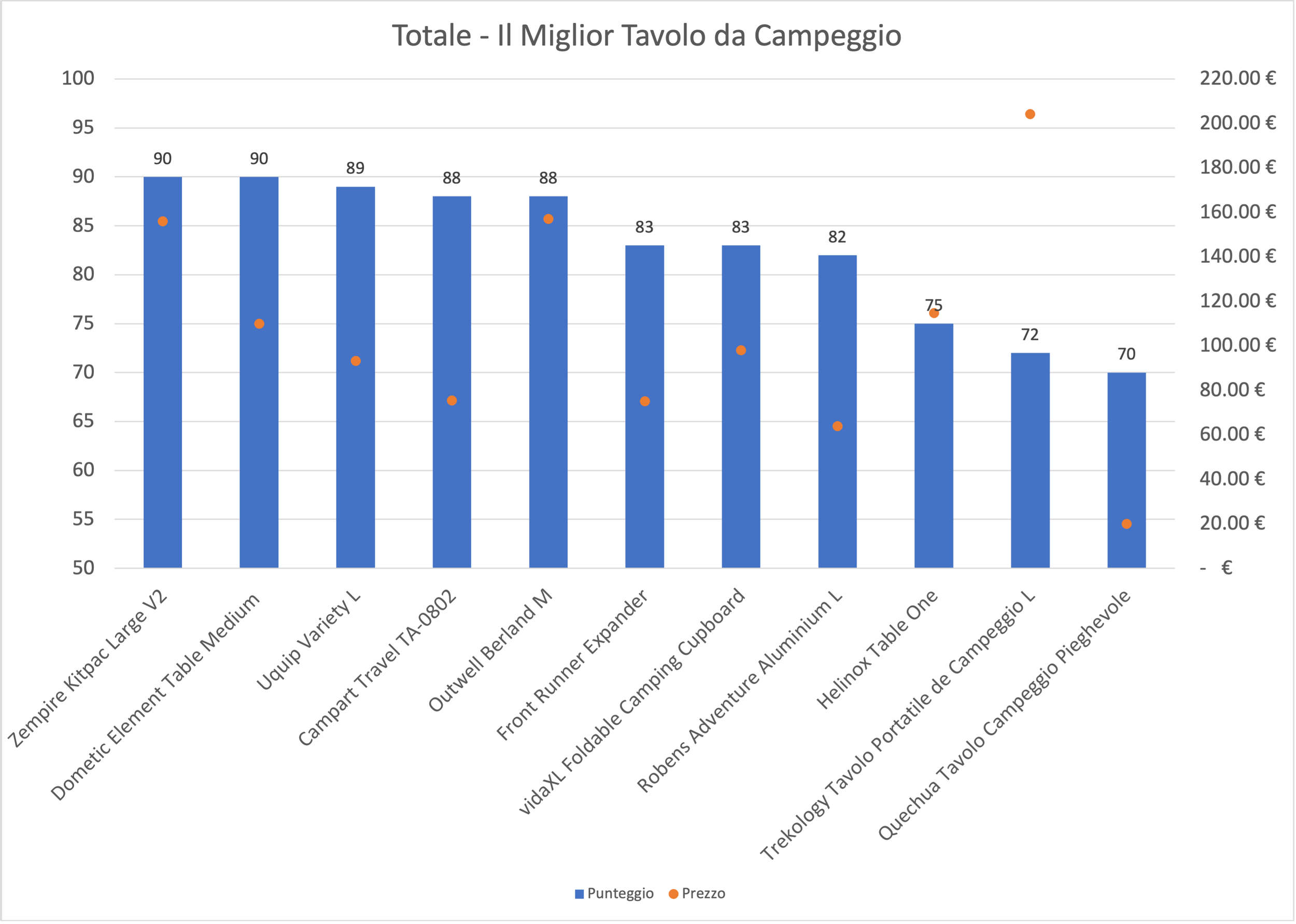 Abbiamo completato un rigoroso processo di revisione per scoprire qual è il miglior tavolo da campeggio disponibile in Italia. Abbiamo provato oltre cento tavoli e selezionato una gamma di modelli in ogni categoria che possono essere utilizzati per vari scopi, da grandi tavoli da campeggio per famiglia a piccoli tavoli utili ad ogni evenienza. Puoi accedere alle recensioni complete di ogni prodotto tramite i pulsanti 'Leggi la recensione completa' qui sotto, o se hai bisogno di qualcosa di comodo da sedere, vai al nostro elenco delle migliori sedie da campeggio.